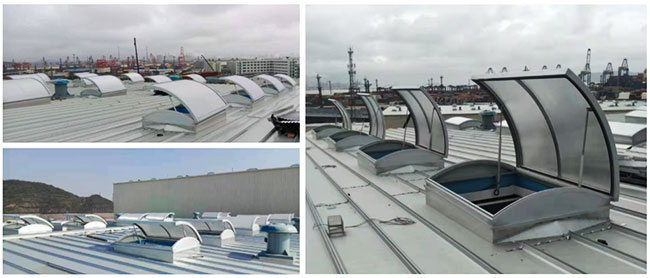 圓拱形的設(shè)計(jì),外觀美觀大氣,能更好的防水,同時(shí)有效減少風(fēng)壓阻力,天窗頂部為采光板,有效增加室內(nèi)亮度,開啟電機(jī)設(shè)計(jì)成24V電壓,可連接消防聯(lián)動(dòng)控制系統(tǒng)及風(fēng)、雨、煙感應(yīng)器。***開啟角度為45°。