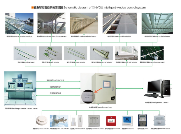 主要適用于公寓,別墅和一些中小型的公共設施。能實現(xiàn)一個智能控制箱區(qū)域內(nèi)的總控、分組控制、單控和遙控功能,每個智能控制箱***多可接50個開窗器。