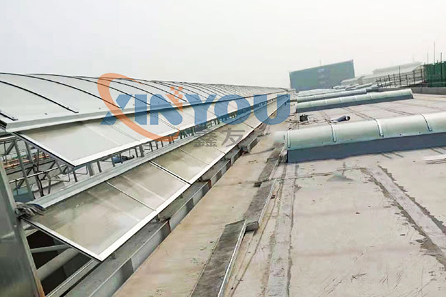 鑫友工業(yè)類電動消防排煙天窗主要適用于廠房等工業(yè)類大型建筑的屋頂采光、通風(fēng)、排煙,設(shè)計依據(jù)建筑標(biāo)準(zhǔn)設(shè)計圖集09J621-2。